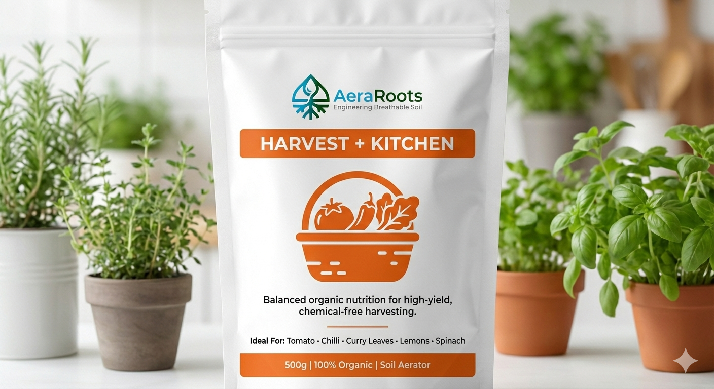Safe, organic nutrition for your kitchen garden. Maximizes yield and flavor for tomatoes, chilies, herbs, and balcony greens.